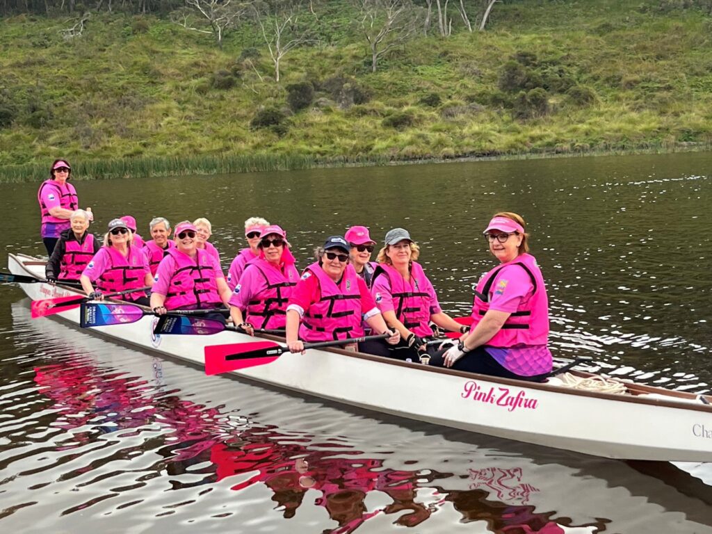 We are Dragons Abreast Blue Mountains, a Breast Cancer Survivor and Supporter Dragon Boat Club guided by our motto: Dream, Encourage, Inspire. Nestled within the Blue Mountains community, we paddle together in a supportive and uplifting environment where every member is encouraged to rebuild strength, confidence and wellbeing at their own pace.