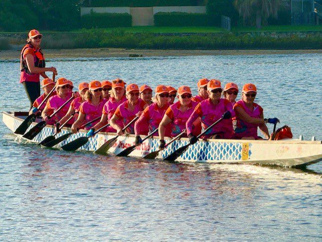 Many of us either haven’t been involved in group sports before, or participation may have been decades ago. It doesn’t take long to catch the dragon boating bug, improve fitness and make new friends. We come from a diverse range of backgrounds and life experiences. Our regular Pinks training session is on Sunday morning.